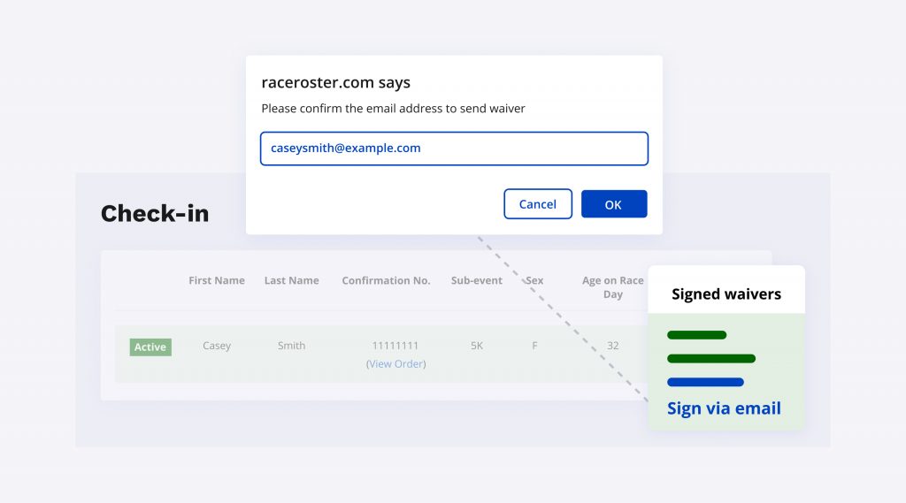 We recently introduced two new features to help you collect signatures for unsigned waivers both before and during your event expo, packet pickup, or participant check-in.