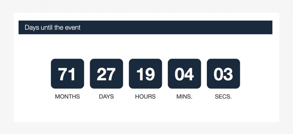 Build up anticipation with our countdown clocks. We have released feature where you can add a countdown clock to your Event Details Page. You have the option to have up to three countdown clocks (registration open date, registration close date, days till the event).