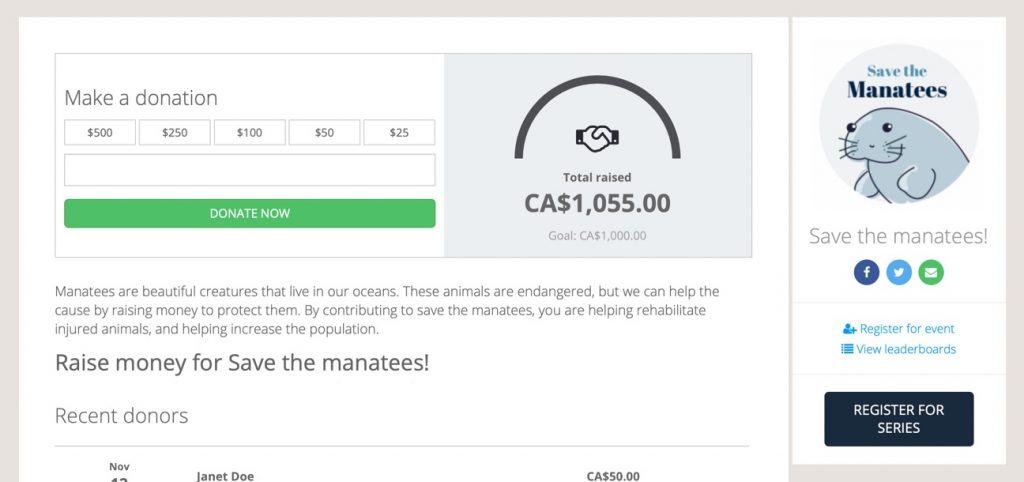 - Fundraising leaderboard for individuals and teams