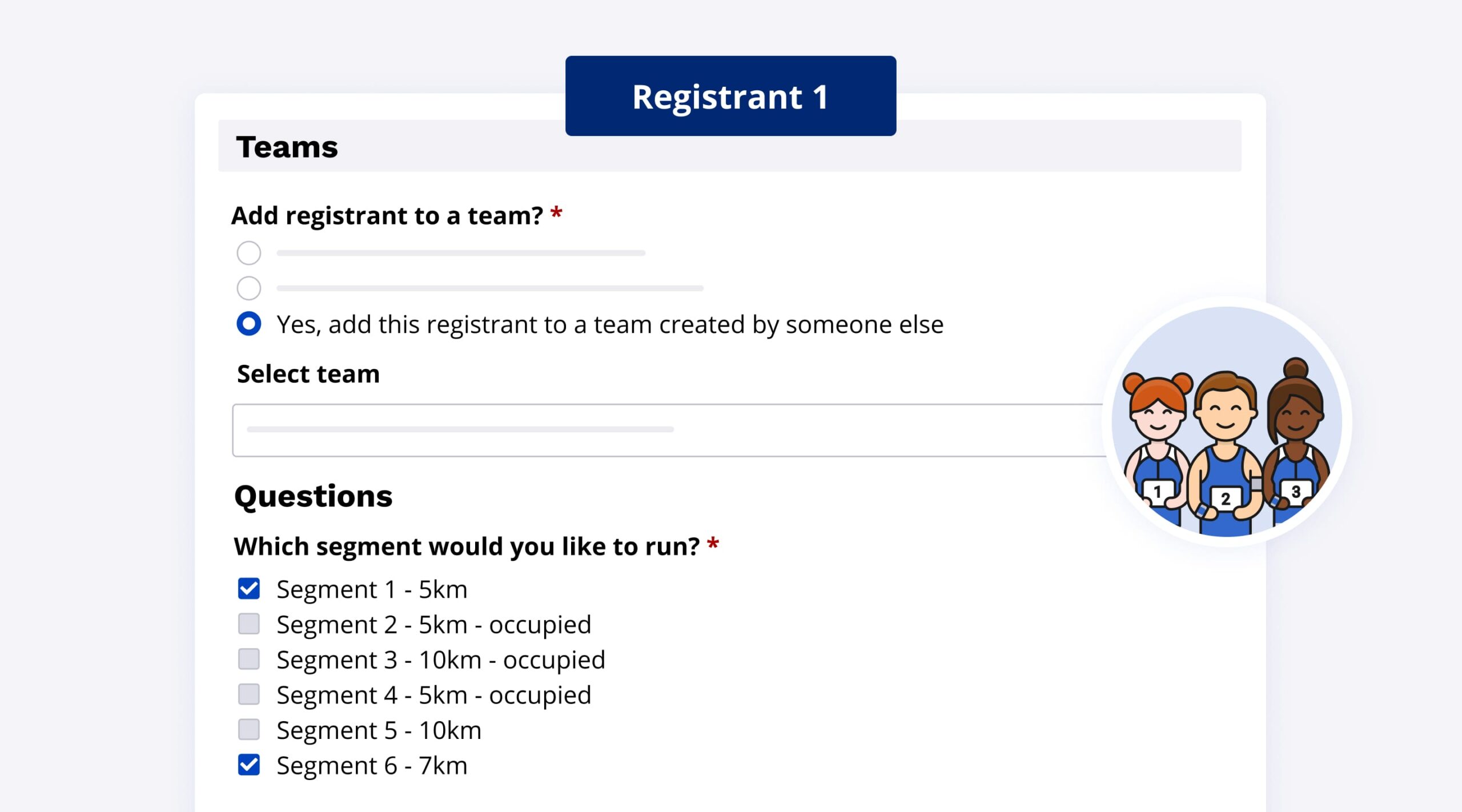 We’ve added new technology to our team questions to give you greater flexibility! Now, allow participants to register for multiple segments in a single registration.