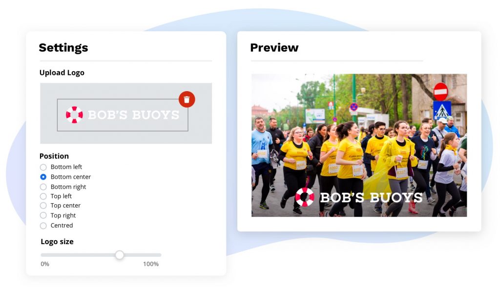 Including a watermark on your event photos is a great way to increase exposure for your brand or the partners you work with. Our watermark tool makes it incredibly easy to upload a logo onto your event photos and offers you the flexibility you need to adjust both the size and placement of your watermark.