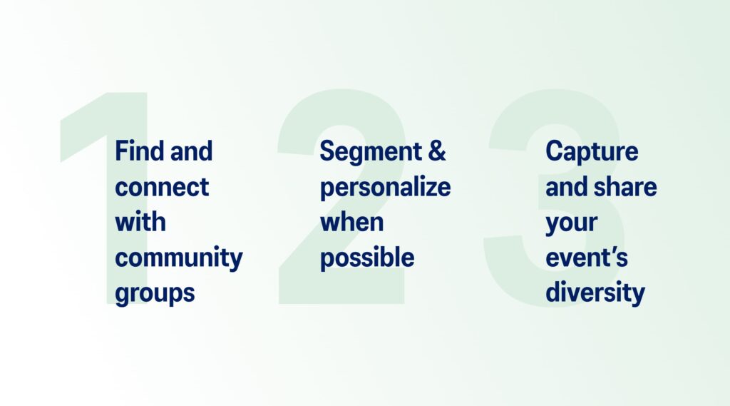 Make diversity, equity and inclusion come to life at your event by proactively inviting and welcoming diverse groups.