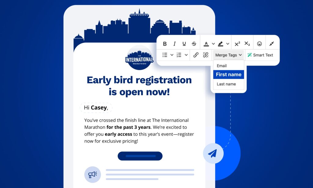 Example: “Hi [First Name], you’ve crossed the finish line at [Event Name] for the past 3 years. We’re excited to offer you early access to this year’s event—register now for exclusive pricing!”