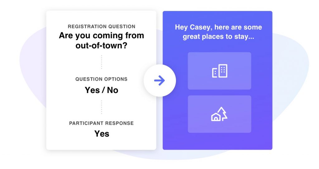 As previously mentioned in 5 great questions to ask participants to identify race trends via registration question metrics, you can determine who will be travelling to your event from out-of-town, then use the questions trigger to send an email to those who might need a place to stay. You could reach out to a hotel vendor and see if they would be willing to offer your participants a discount. The hotel will have the opportunity to get more business, and you’ll be enhancing the overall event experience for your participants right from the beginning.