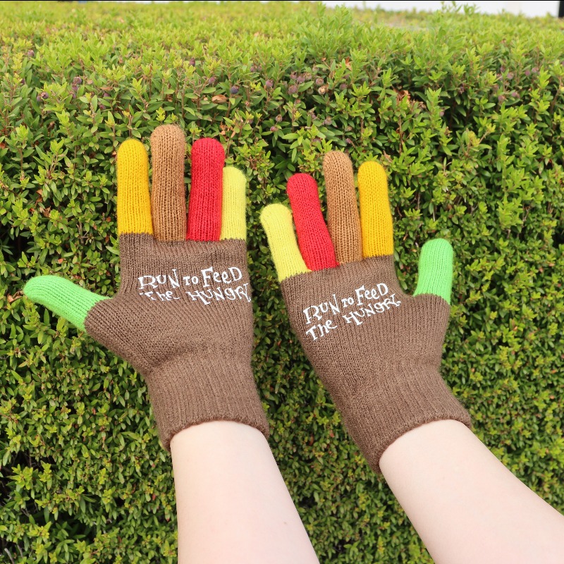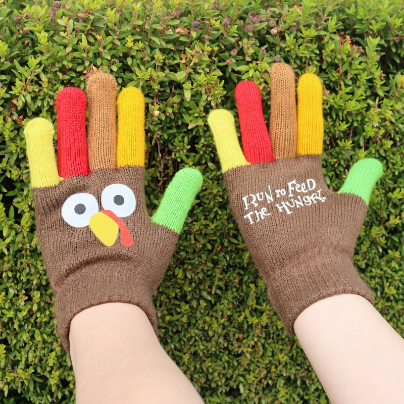 Stay warm and festive this Thanksgiving with our Run to Feed the Hungry turkey gloves! One size fits most adults.