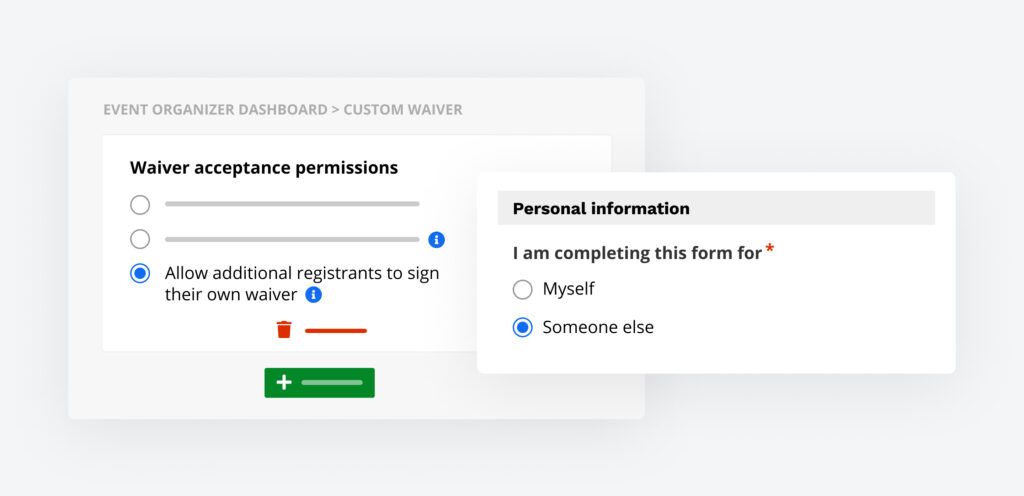 Ensuring that every participant signs their own waiver will allow you to rest assured knowing that each participant has legally signed off on all agreements themselves. You can enable this feature in your waiver settings by selecting “allow additional registrants to sign their own waiver”. If this is enabled, the waiver section will be skipped when registering for someone else.