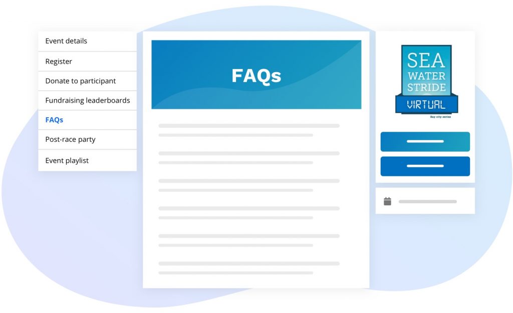 - Virtual – The process of how your virtual event works can vary depending on your chosen event platform. This can be intimidating for those who are hesitant about committing to the unknown. If your event is virtual, try outlining exactly how it’s going to work on your homepage, highlighting just how simple the virtual event process really is. Maybe include a link on your homepage to your FAQs to answer any burning questions that potential registrants may need answered before deciding to participate.