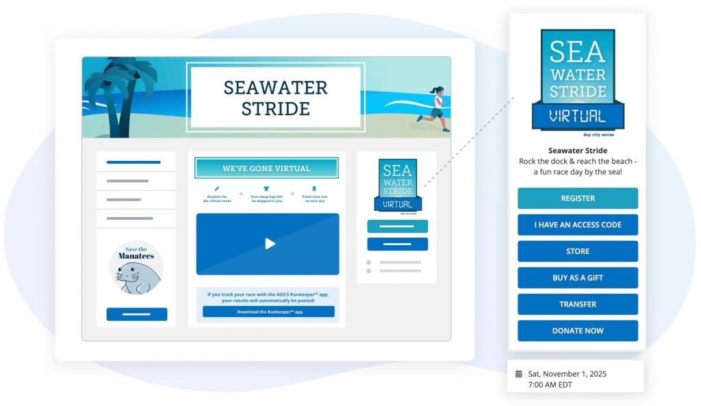 The design of your brand is your event’s identity – its voice, image, intentions, and goals are reflected in your branding. It’s important to us that we provide you with the tools you need to showcase your branding across all pages that are part of your event experience. We offer a wide range of customization tools, allowing you to showcase your event branding from the event details page, through registration to confirmation, onto results and throughout the fundraising experience.
