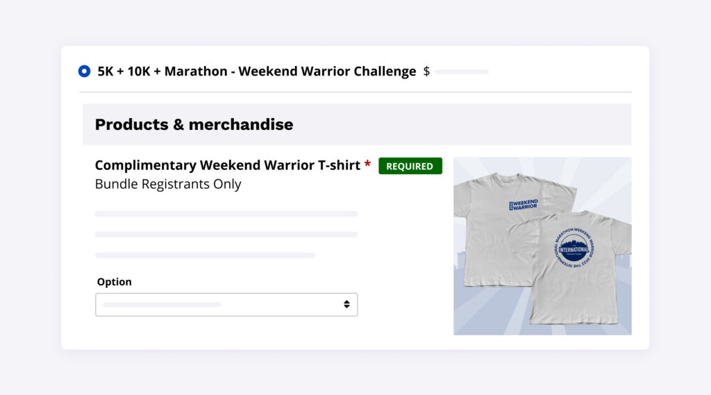 For example, you could offer a bundle that allows participants to sign up for your distance training challenge and strength training challenge. This is a great way to further engage with your participants prior to event day.