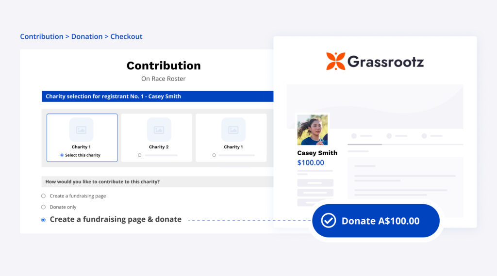 Please note: In order to provide participants with the option to both donate & create a fundraising page on Grassrootz, a Payment Profile must be created on Race Roster. Learn how to set up an AUD fundraising payment profile or how to set up a NZD payment profile.