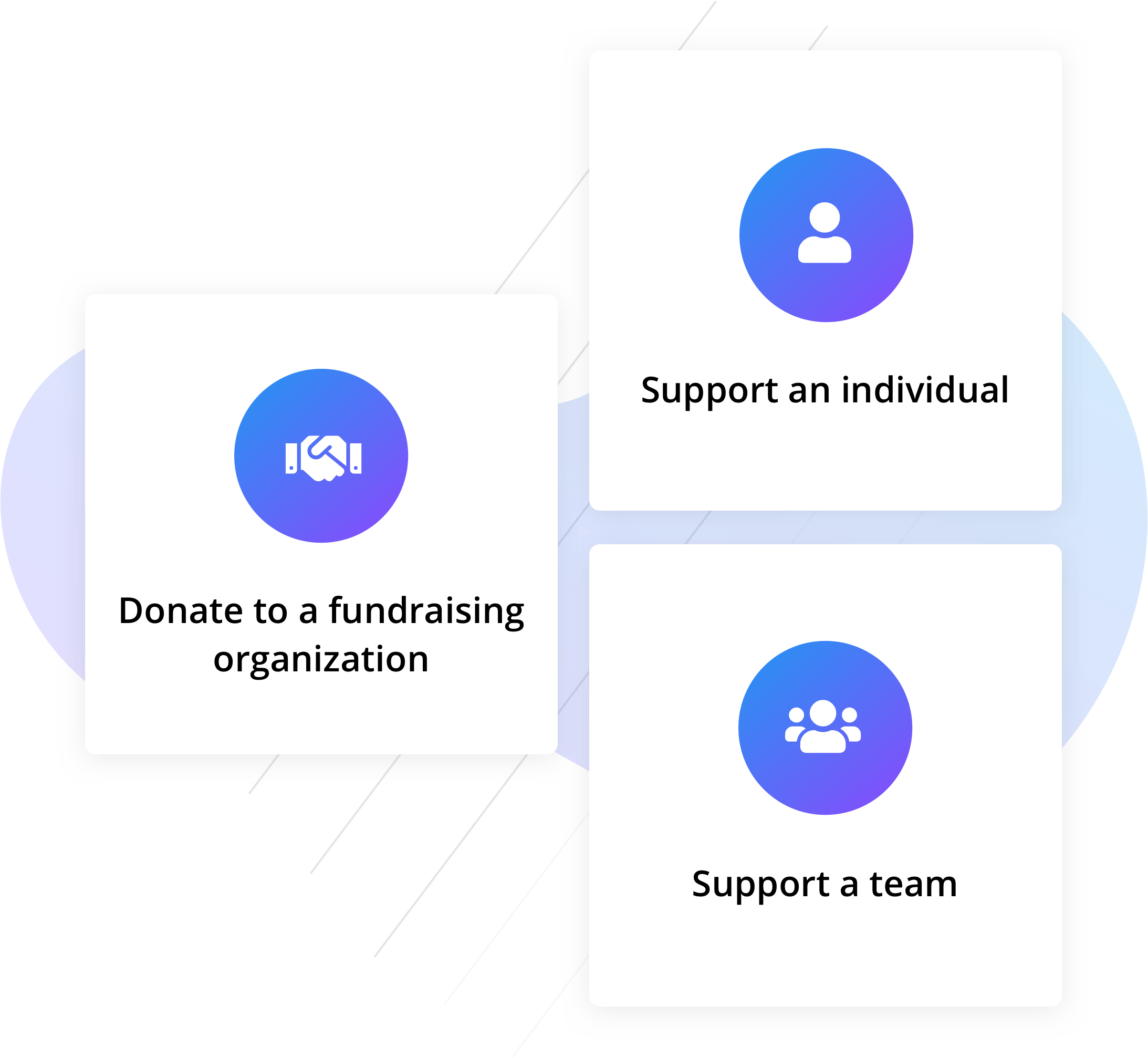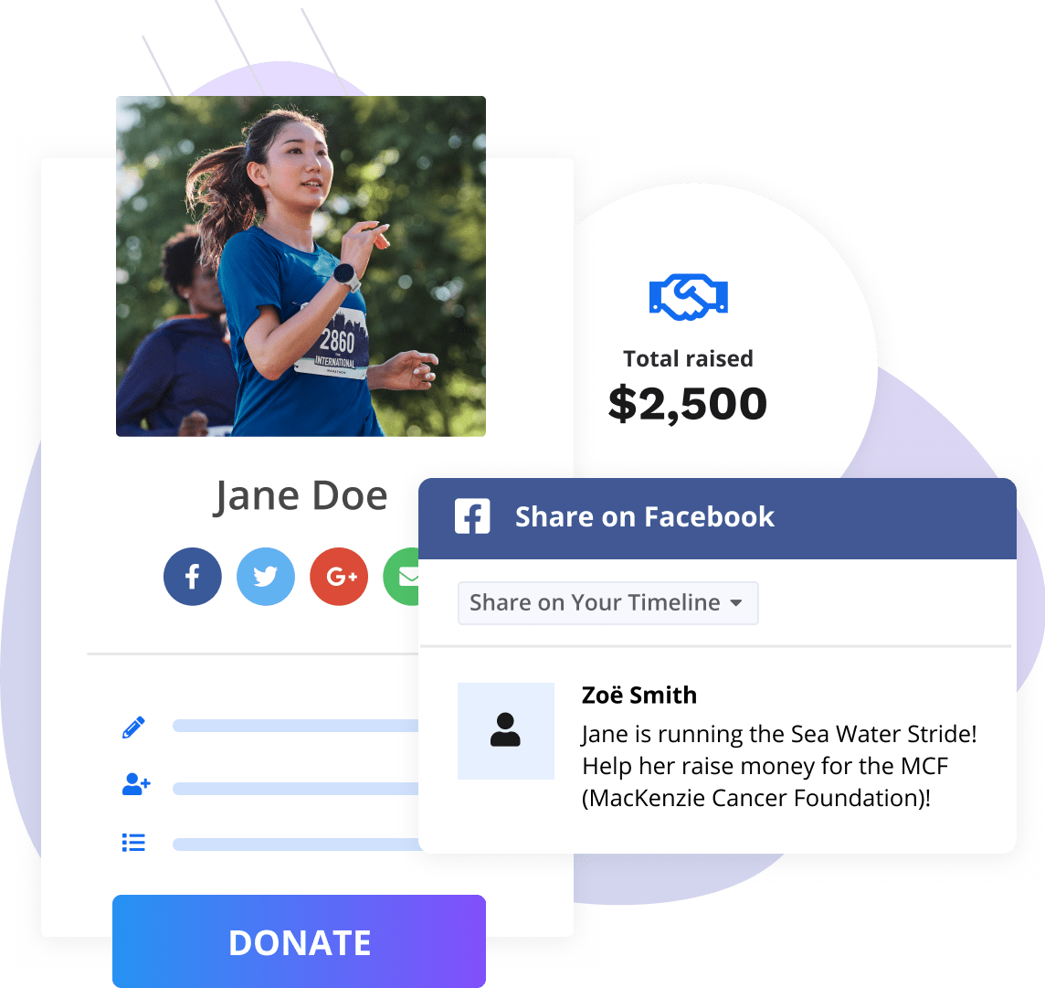 Provide your donors with different opportunities to give. They can donate to a fundraising organization, directly to a team, or to an individual’s fundraising campaign.