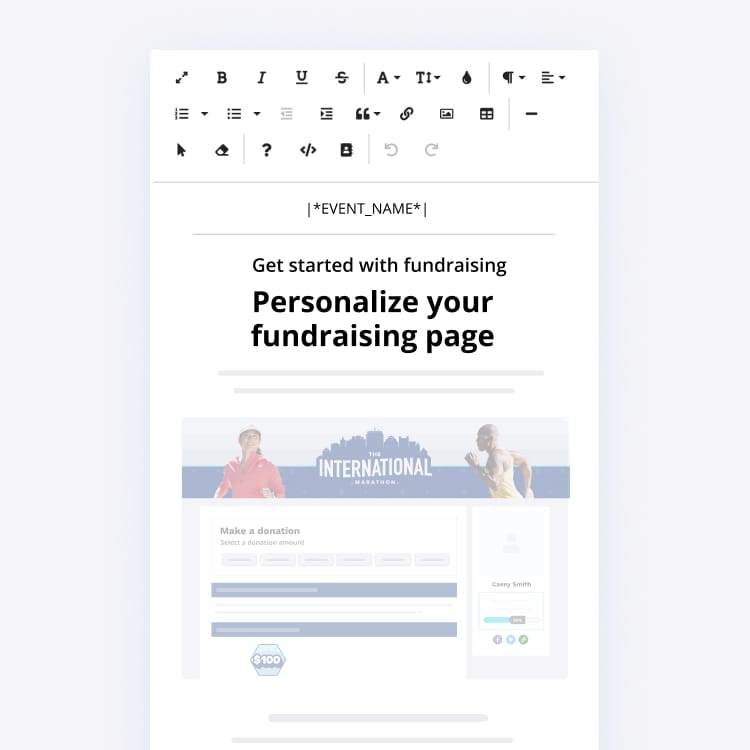 We have pre-crafted email templates to help get your participants engaged in personalizing their fundraising pages!