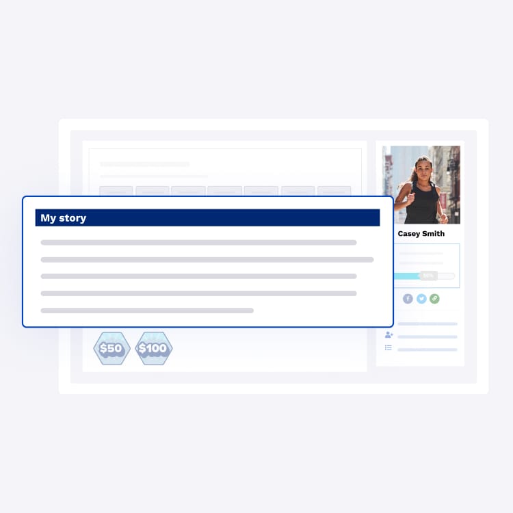 Let fundraisers connect with the cause by sharing their ‘why’ and customizing their page with personal photos!