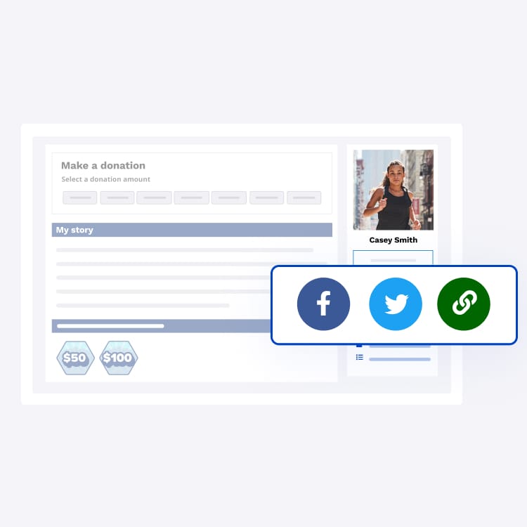 Participants can easily share their personal fundraising pages through a variety of social media platforms linked right from their personalized page!