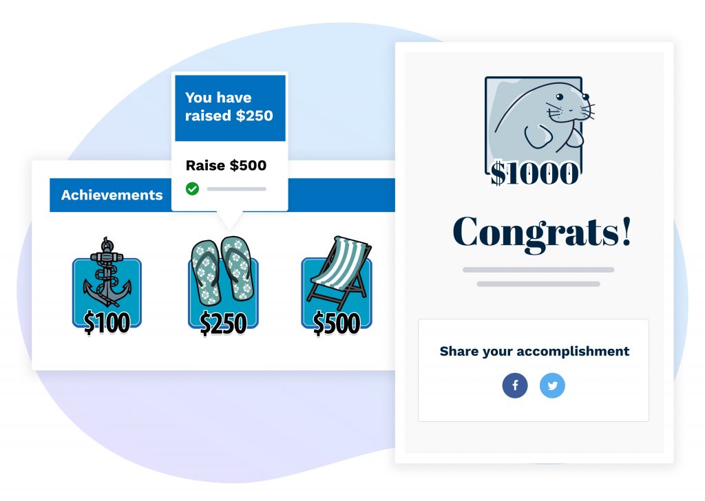 Many people will contribute to a good cause for the sake of contributing to a good cause, but a little extra incentive can make donating to your particular organization slightly more enticing. Offer participants a reward for every milestone hit by creating unique digital badges. For example, participants could receive a badge after raising $100, $250, $500, etc. The criteria for achieving each badge is up to you.