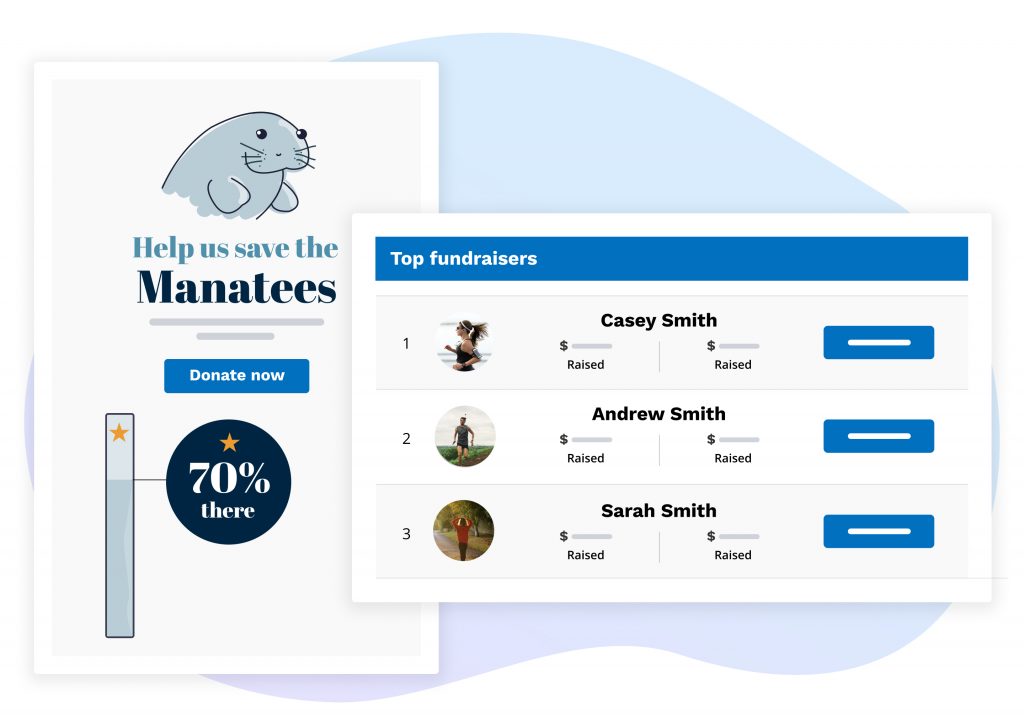 - Fundraising leaderboards – Encourage social sharing and friendly competition by enabling our top fundraiser, top donor, and top team fundraising leaderboards on your event details page.