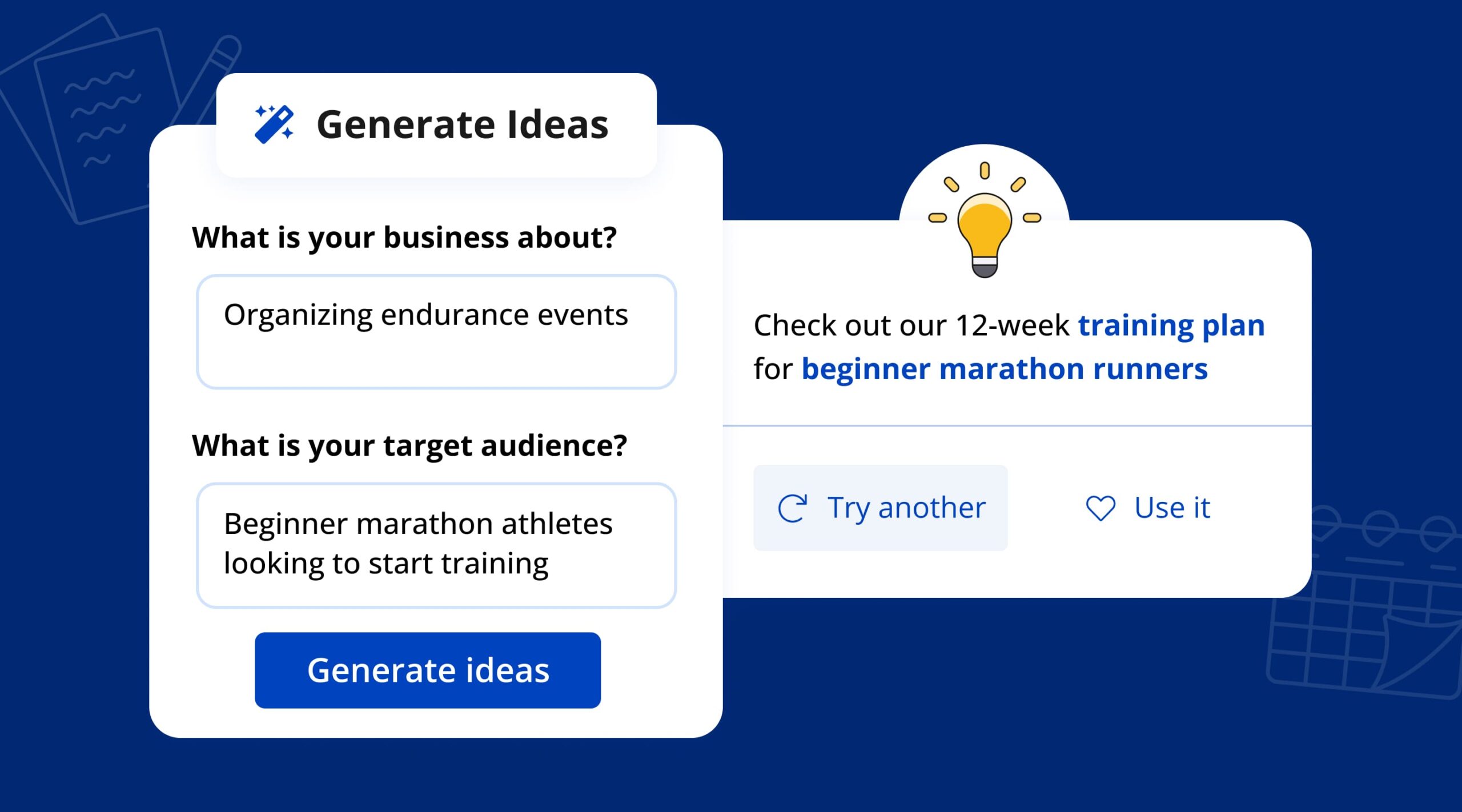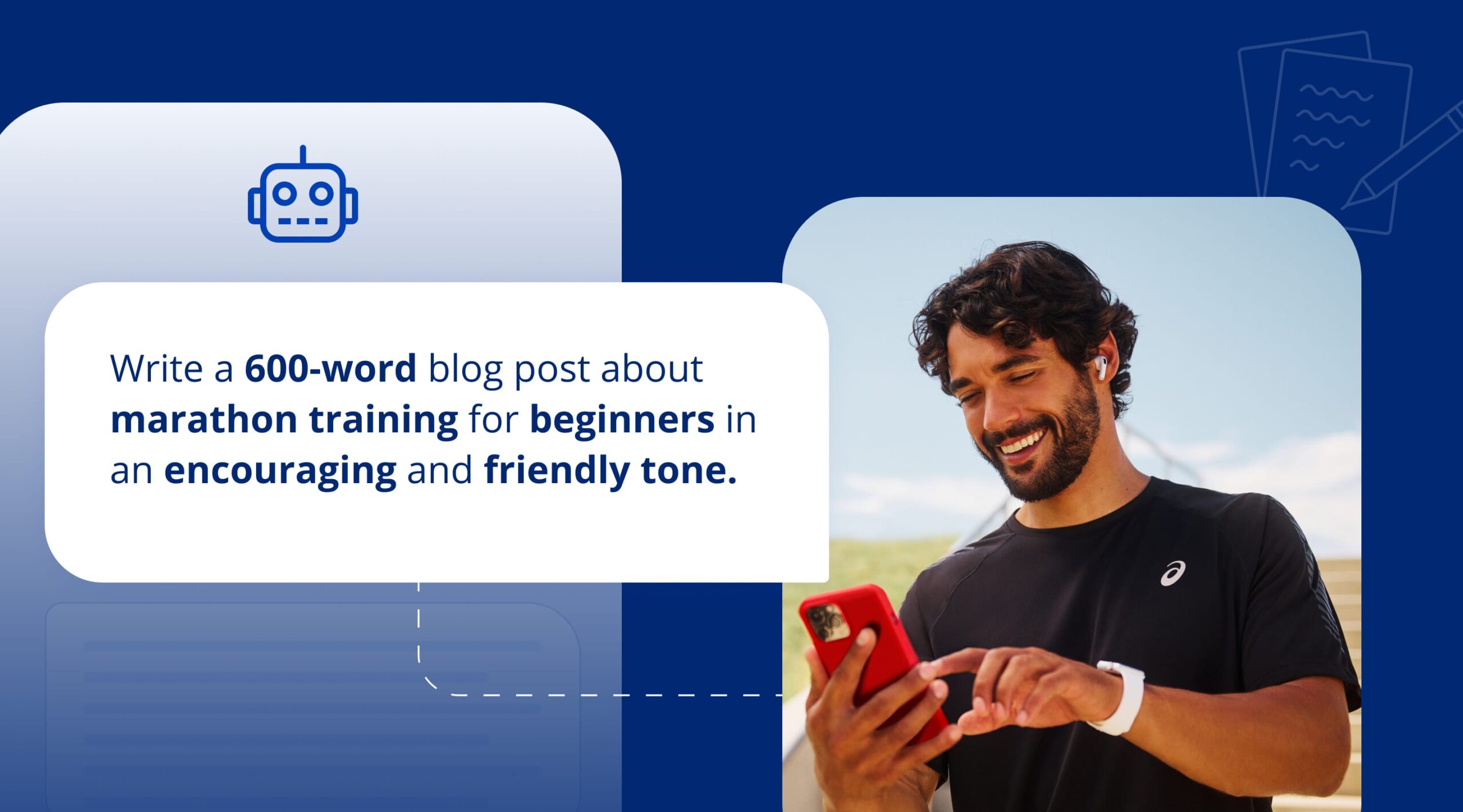 2. Include Key Details: Provide the necessary context or information (e.g., “Focus on a 12-week plan, include running schedules, and tips for injury prevention”).