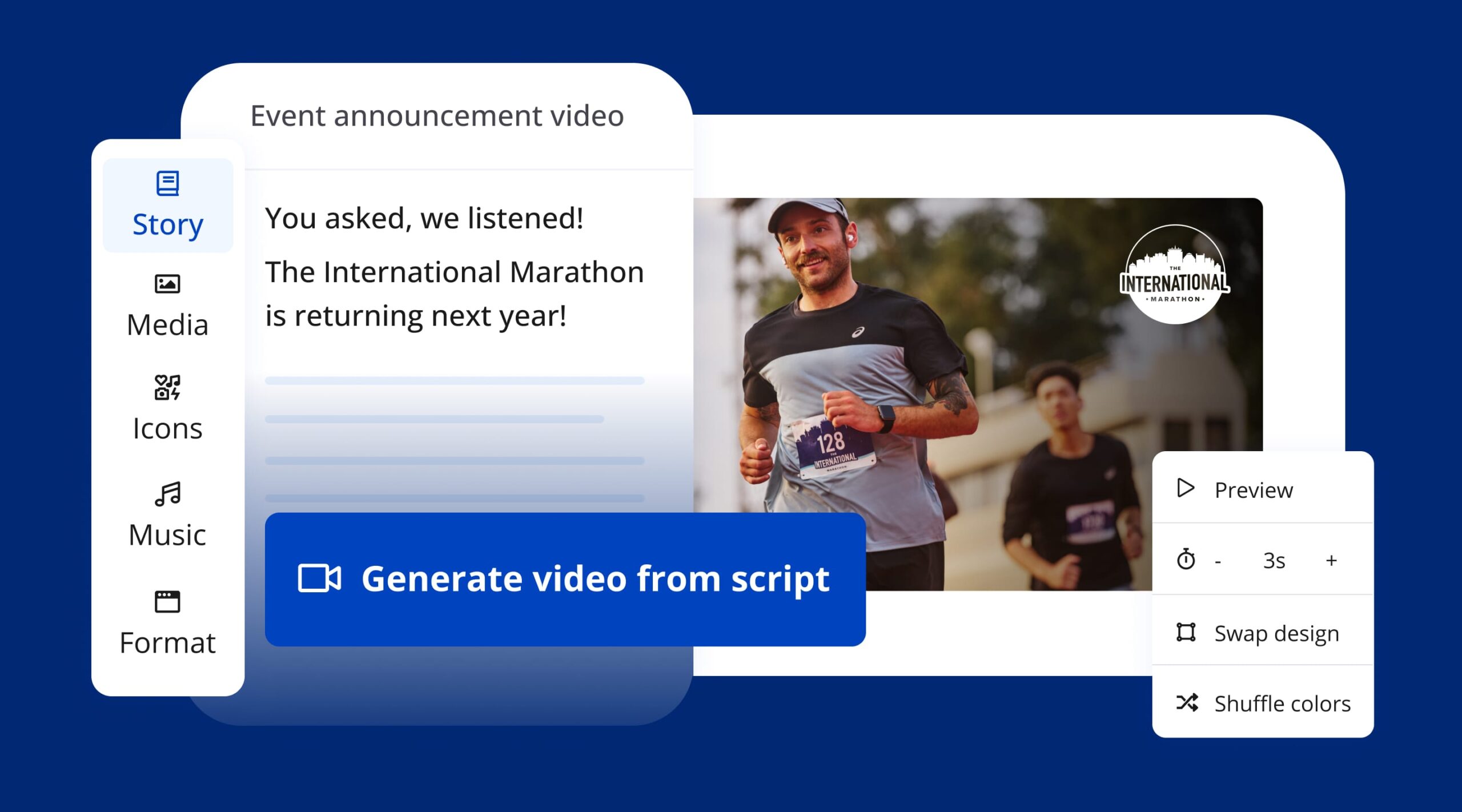 Whether you need a pre-event promotional video or a race day highlight reel, Lumen5 and other AI video generators can help you maintain a consistent flow of high-quality video and boost participant engagement with visually captivating content.