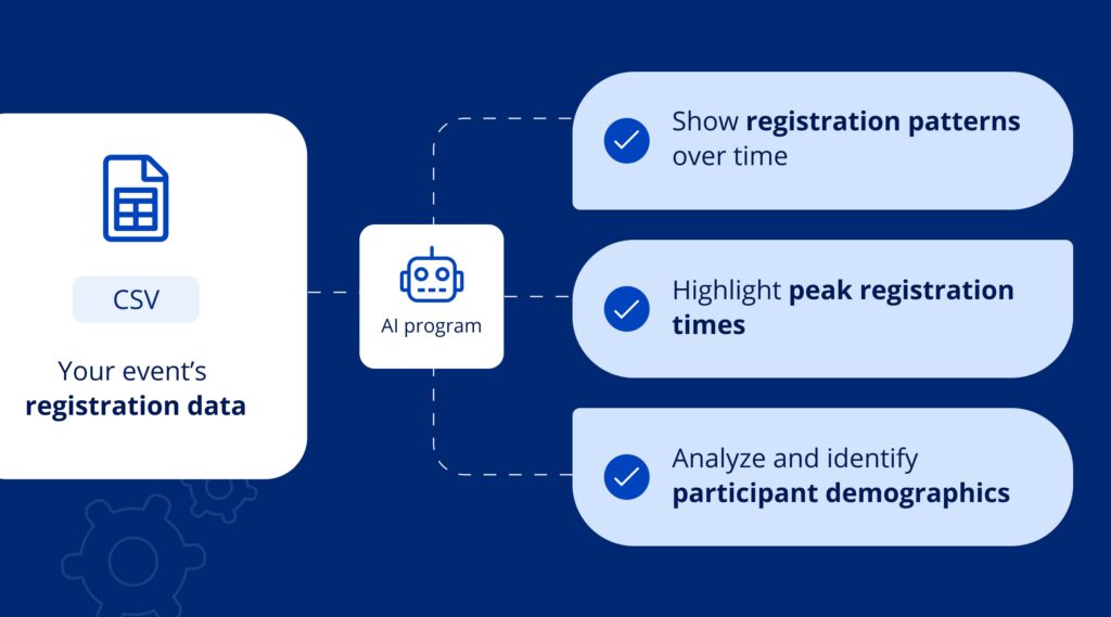 For example, you input your event’s registration data into ChatGPT. You can prompt it to analyze the data and identify trends like participant demographics, peak registration times and predicted turnout that you can use to optimize event planning in the future.