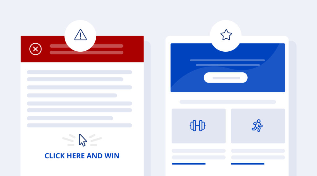 What makes an email look like spam? Usually, it’s poorly designed, includes spelling and grammar mistakes, doesn’t load properly, or unrealistic promises or scare tactics to grab your attention.