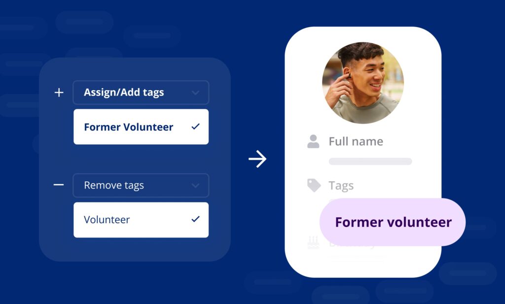 - Real-time updates: Remove outdated tags, like assigning a “Former Volunteer” tag to individuals who are no longer active.
