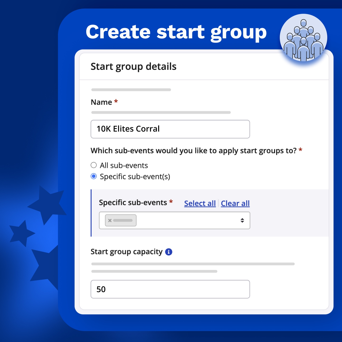 From custom group names and capacity limits to validation rules, this feature gives you the flexibility to tailor start groups to your specific event needs.