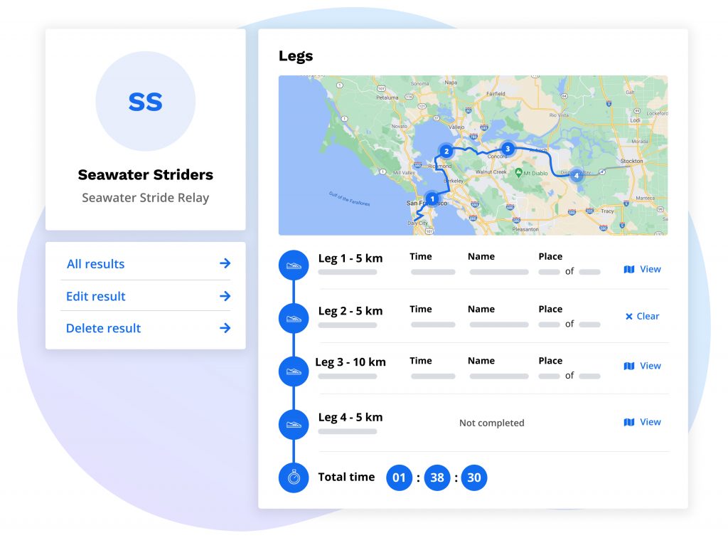 You can now display team results on a leaderboard, allowing participants to view a clear visual breakdown of each team’s completed leg segments. The team relay leaderboard displays ranking by team and ranking by leg, allowing each participant to deep-dive into how they placed individually, as well as overall as a group.
