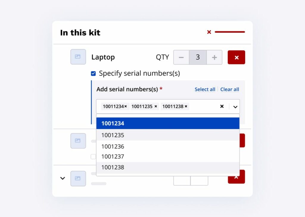 Now, you can select the specific quantity of those laptops when adding them to a kit!
