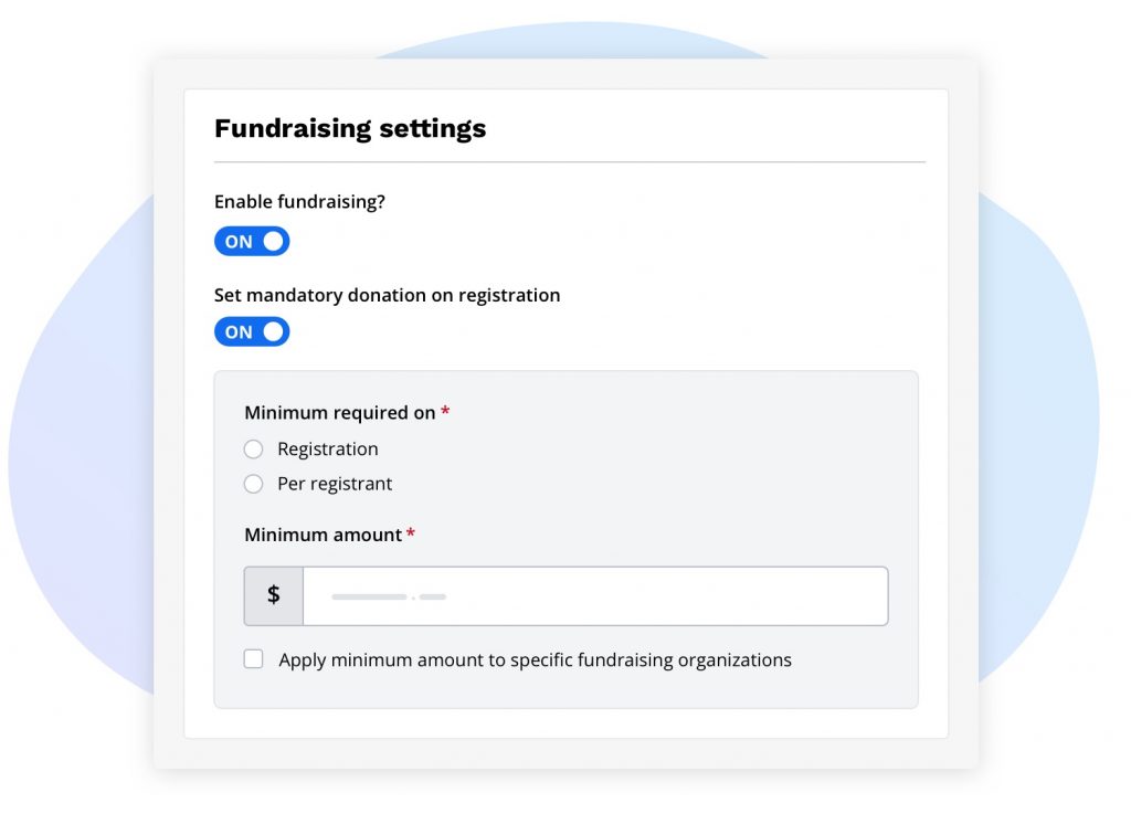 We introduced the ability to activate mandatory donations on your event. Enabling this feature will prevent registrants from continuing on in the registration process if they do not make a donation and if their donation does not meet the required minimum amount that you set.