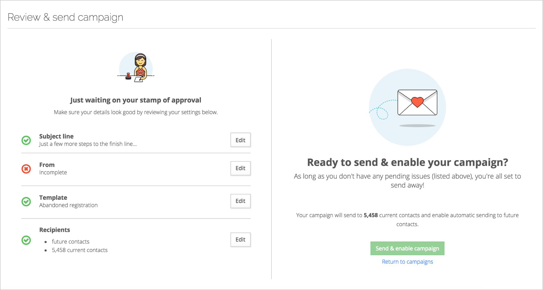 Want to know more? Learn how to create an email campaign, Learn how to view and manage recipients or Learn how to send a test email.