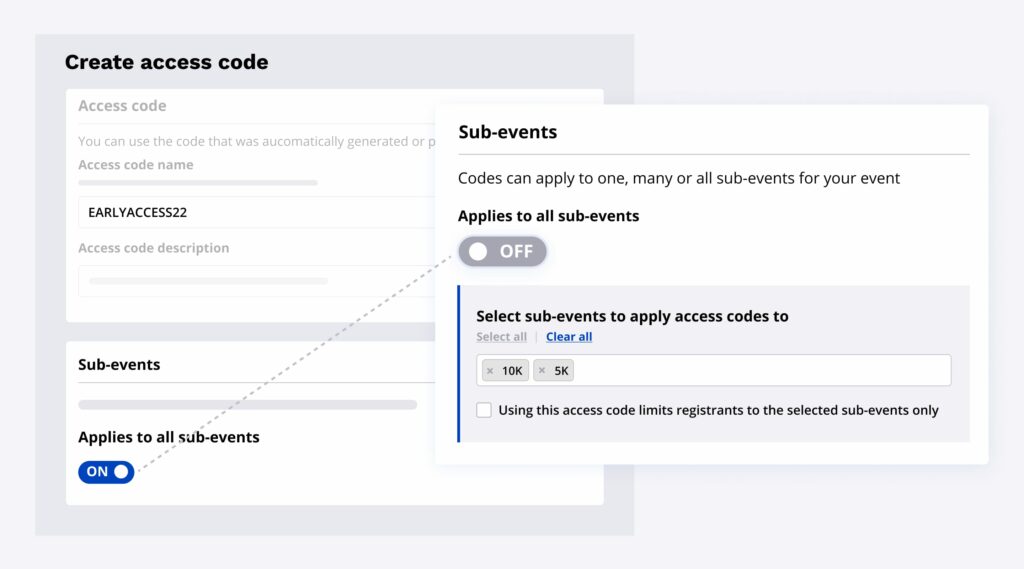 We recently updated the design of sub-event access codes, making it clear to registrants when only some of your sub-events require an access code. Before we dive into these updates, let’s revisit access codes, how they work, and what you can do with them!