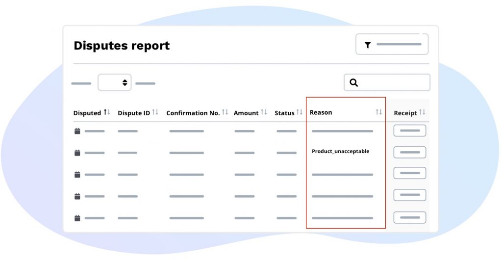 Additionally, you can leverage our filter functionality to display disputes that occurred in a specific date range or filter by status. You can also use the search functionality to quickly find a specific dispute.