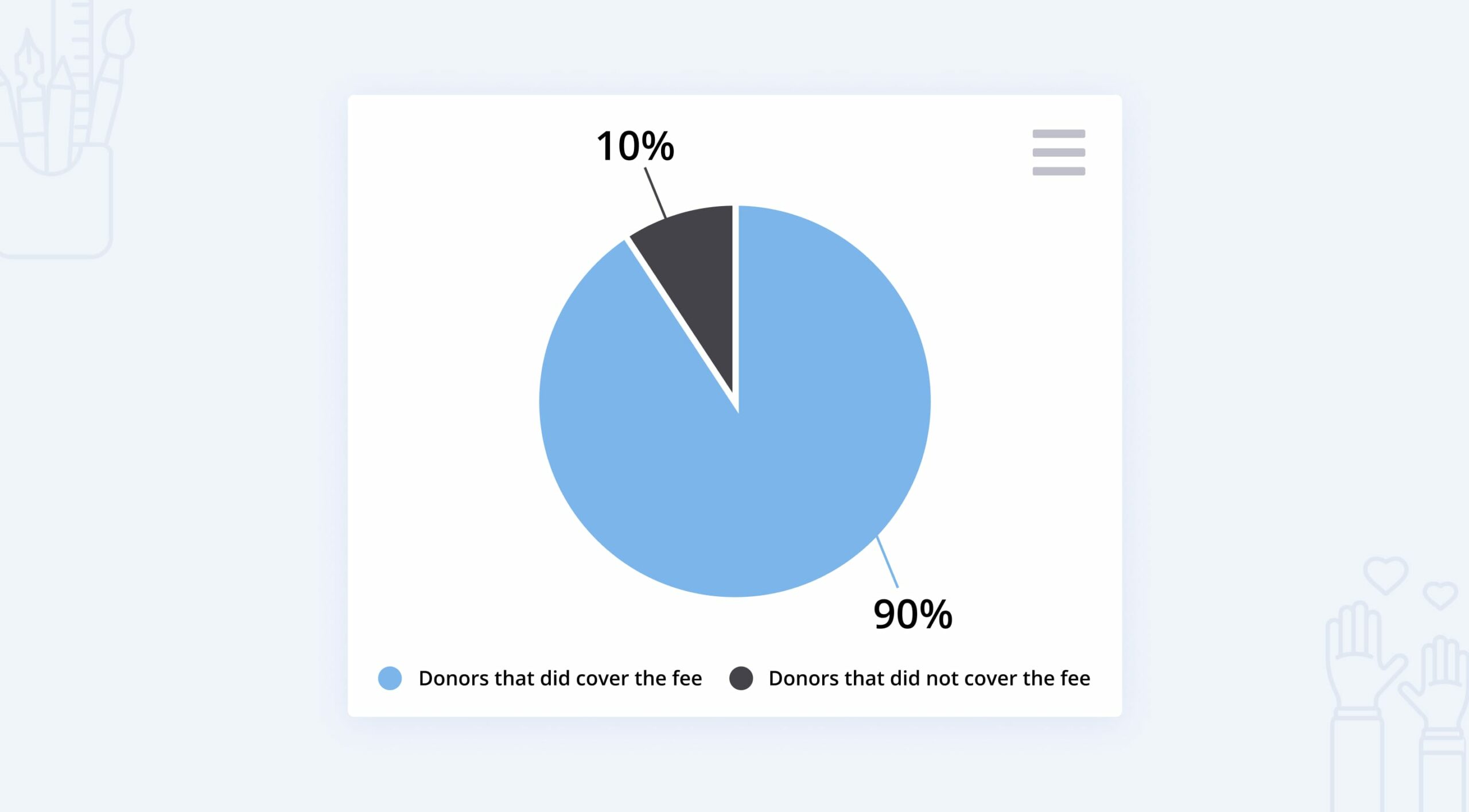 A new chart has been added to your fundraising metrics page, indicating how many donors chose to increase their donation to cover the fee, and how many did not. Before we dive further into this new chart’s capabilities, let’s touch up on the donor top-up tool.