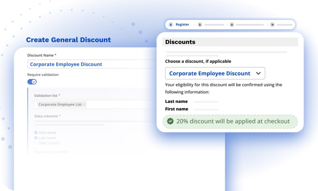 With validation benefits, you can ensure only eligible participants receive special discounts—no promo codes required! Simply create a validation list in Race Roster CRM and specify the participant details to verify eligibility. During registration, participants will see a new “Discounts” section where they can choose from available discounts. If a discount requires validation, our system will automatically check their information against your list and clearly indicate their eligibility.