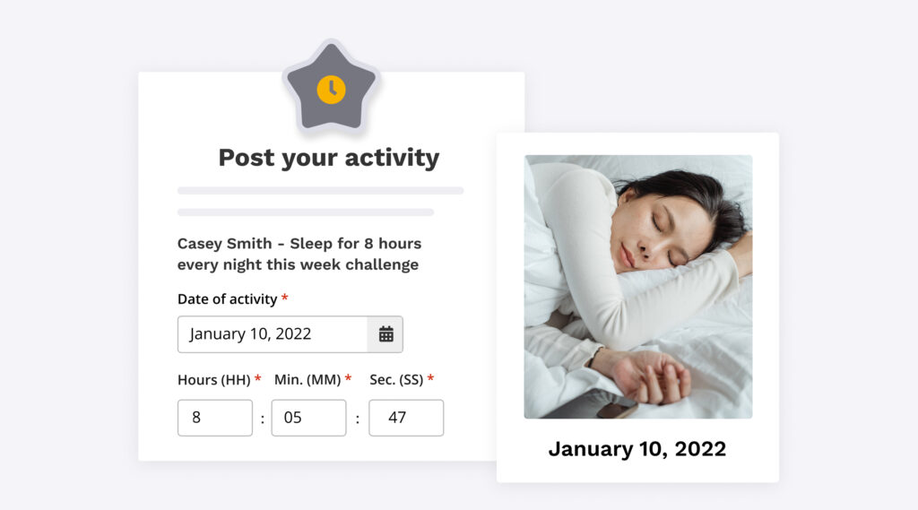 With a time-based challenge, participants can work towards spending a specific amount of time doing a certain activity or to spend as much time as they possibly can on that activity within a specific time frame.