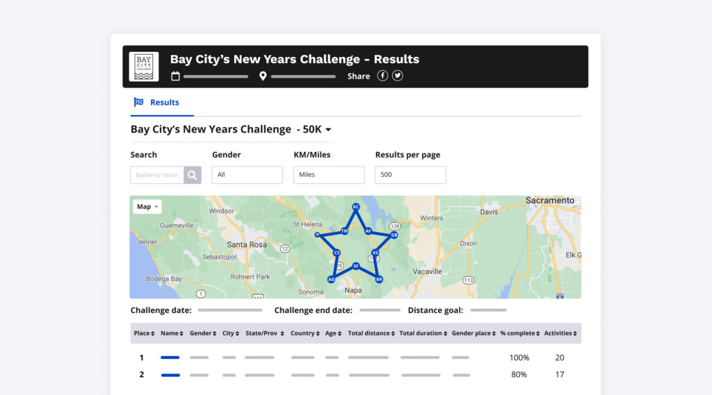 - Specific distance to cover a custom map route – Since challenge maps are used to indicate progress and do not represent the actual route that participants are covering, you can be as creative as you like with your map shapes!
