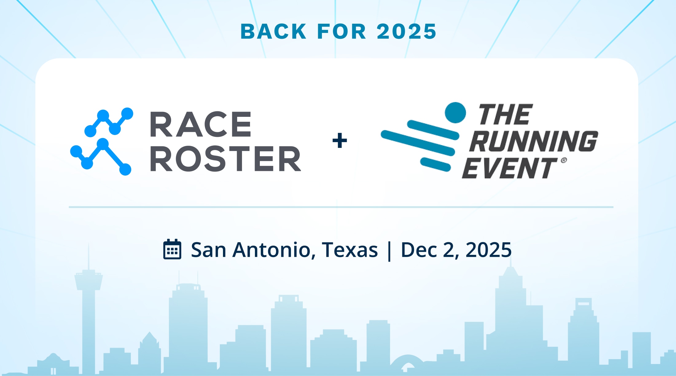 London, ON (Thursday, Sept 18, 2025) – In partnership with The Running Event (TRE), Race Roster is excited to announce the return of the Race Director Summit presented by Race Roster during The Running Event 2025 at the Henry B. González Convention Center in San Antonio, Texas. The summit will take place on Tuesday, December 2, 2025; The Running Event is held December 2-4, 2025.