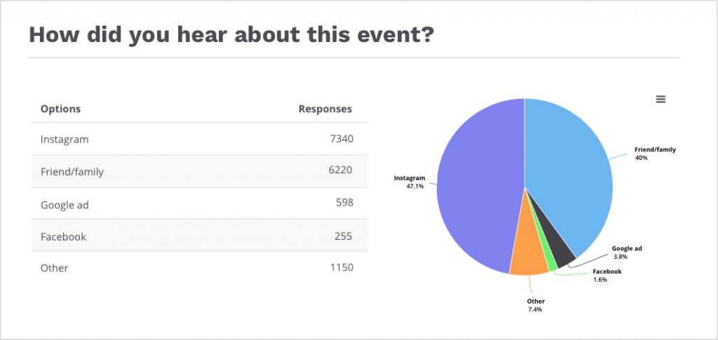 We recently released an all new registration question metrics dashboard. You now have the ability to view a high-level overview of the answers to the questions you’ve asked on your registration form. Having answers in an excel doc is great, but it can take a long time to gather any useful insight. With visual representations in the form of pie charts, it allows you to quickly spot important trends that can influence how you manage your event.