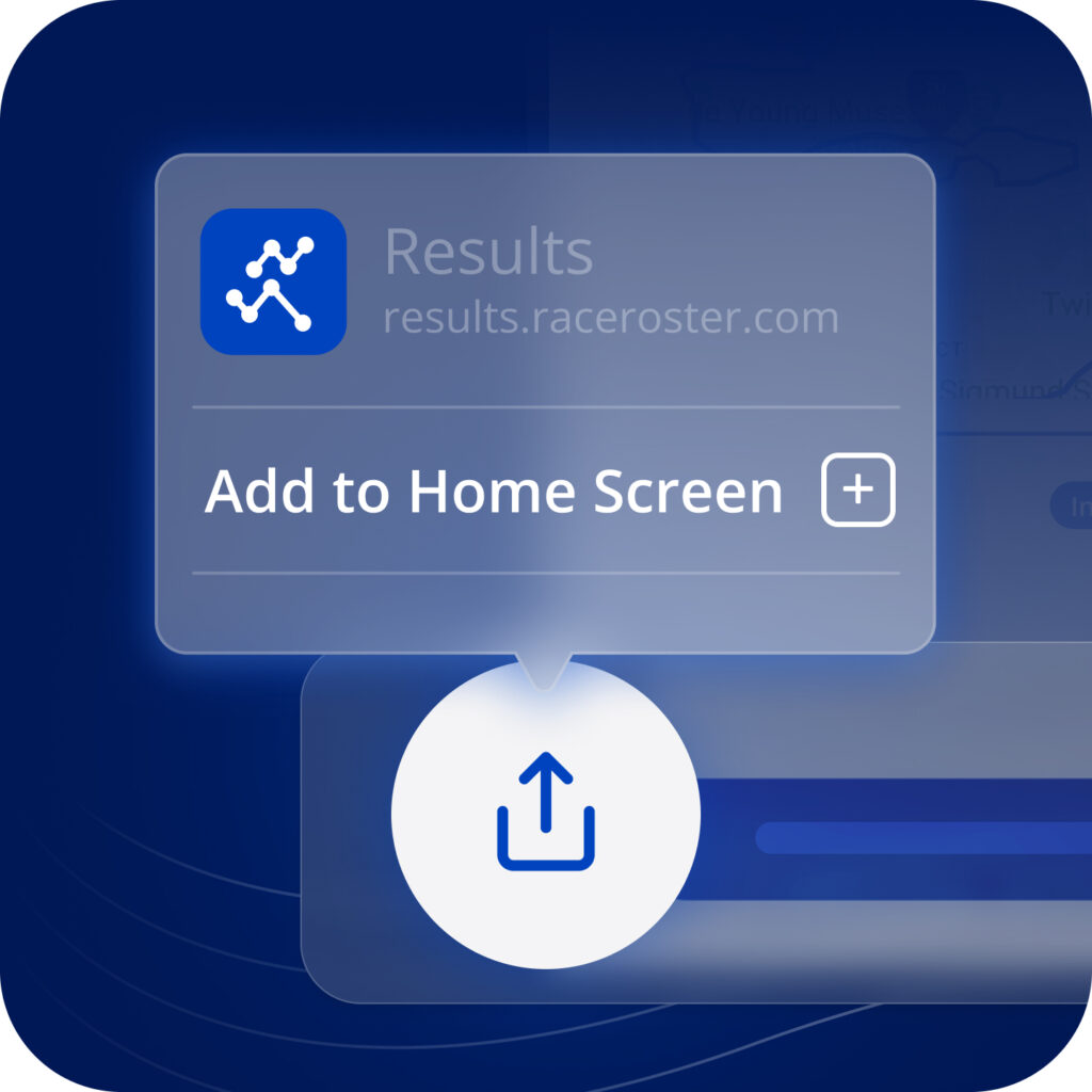 Our PWA design makes it easy for participants and spectators to add a shortcut to your event’s results page directly to their phone’s home screen. Depending on the device used, it can be as simple as tapping “Share” and selecting “Add to Home Screen.”