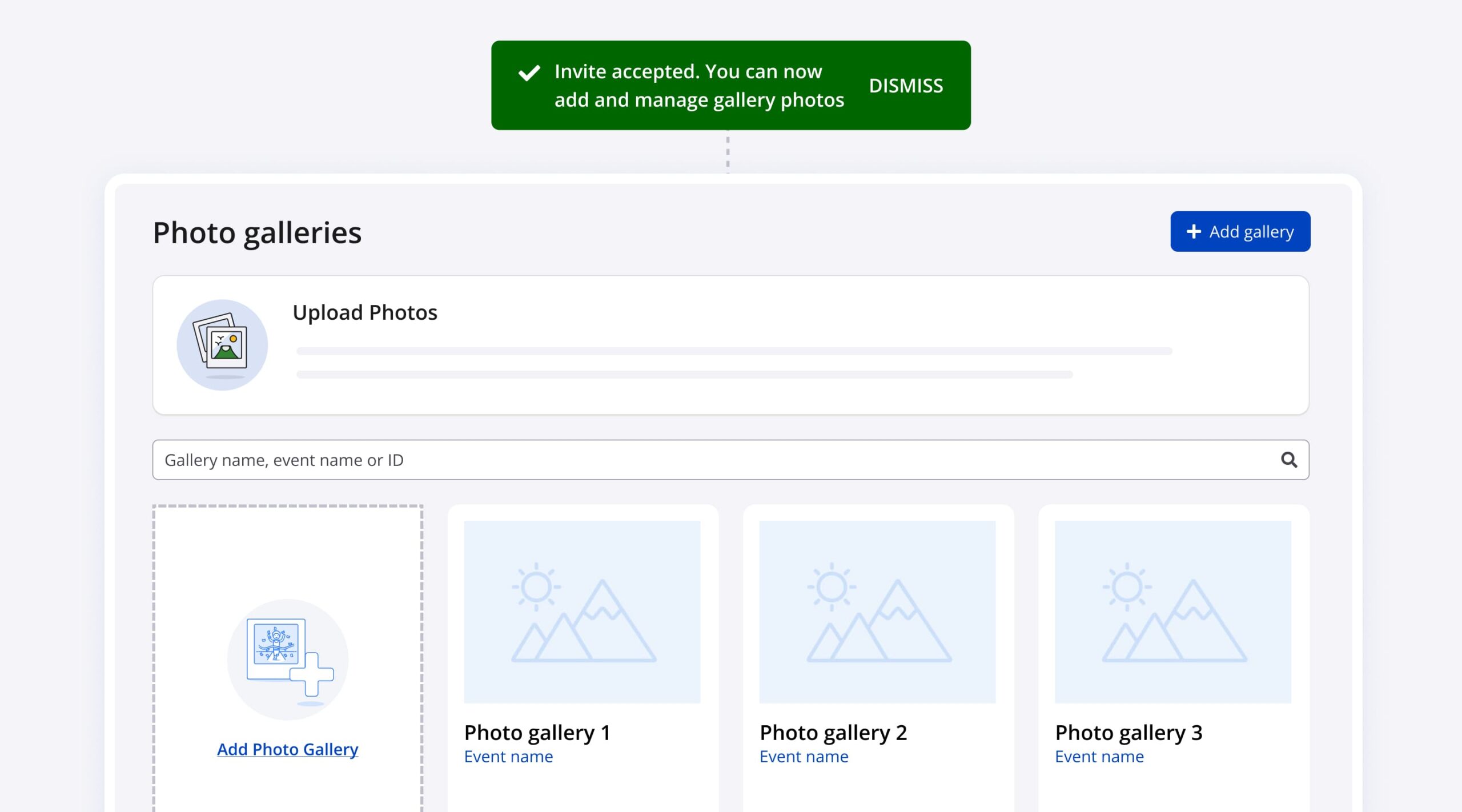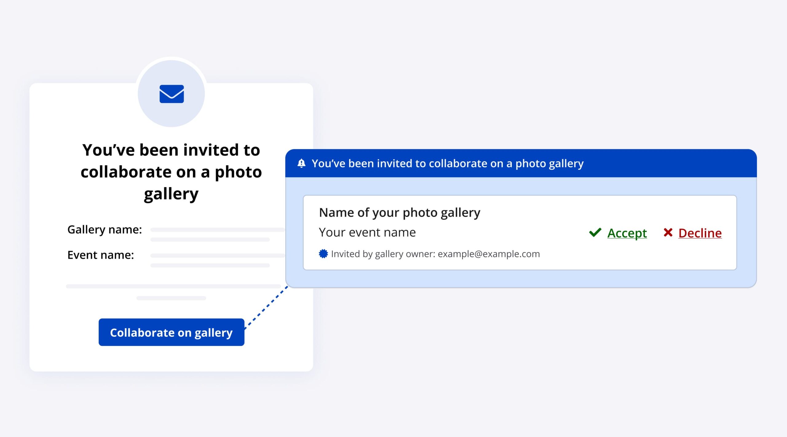 Our new automated process ensures collaborators are notified when they’ve been invited to collaborate on a Photo Gallery, and provides you with real-time status updates on your sent invitations.