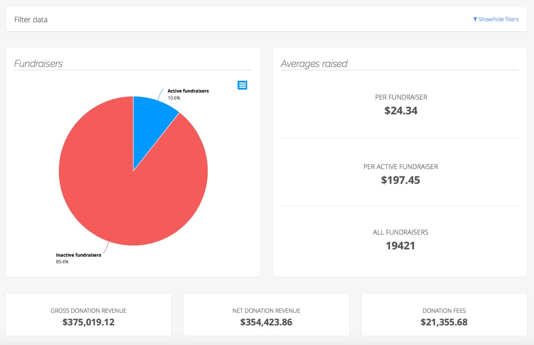 Organizers can easily narrow in on each fundraiser’s activity; significantly improving their ability to retain donors and squeeze a little more love out of each active fundraiser. With a better understanding of who your active fundraisers are and how much each has raised, organizers will know what efforts to double down on and what to forgo.