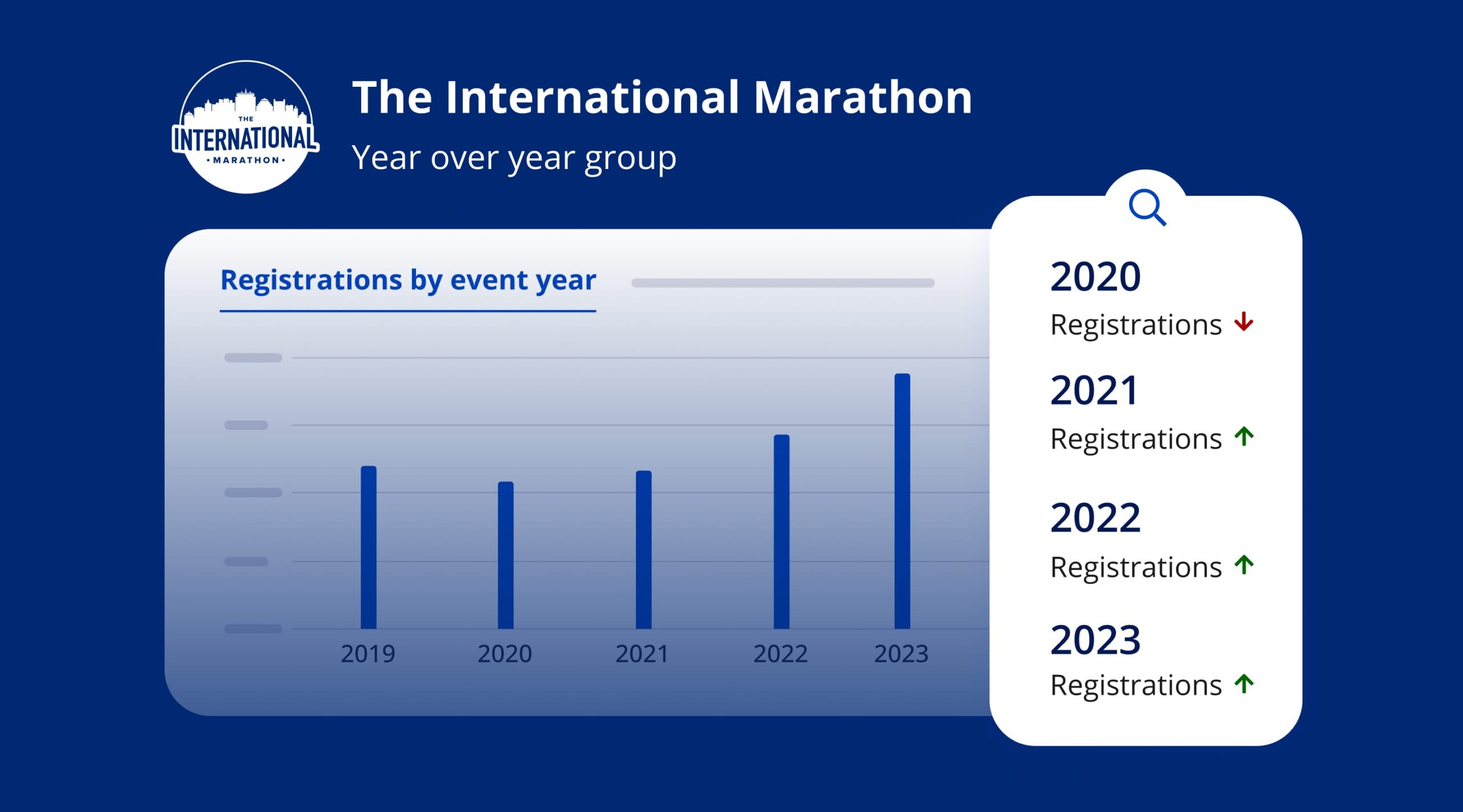 Imagine wanting to assess how your annual events have evolved over time. With YOY Event Groups, you can view a comparison bar chart of registration counts across the years, helping you identify growth patterns or areas needing attention.