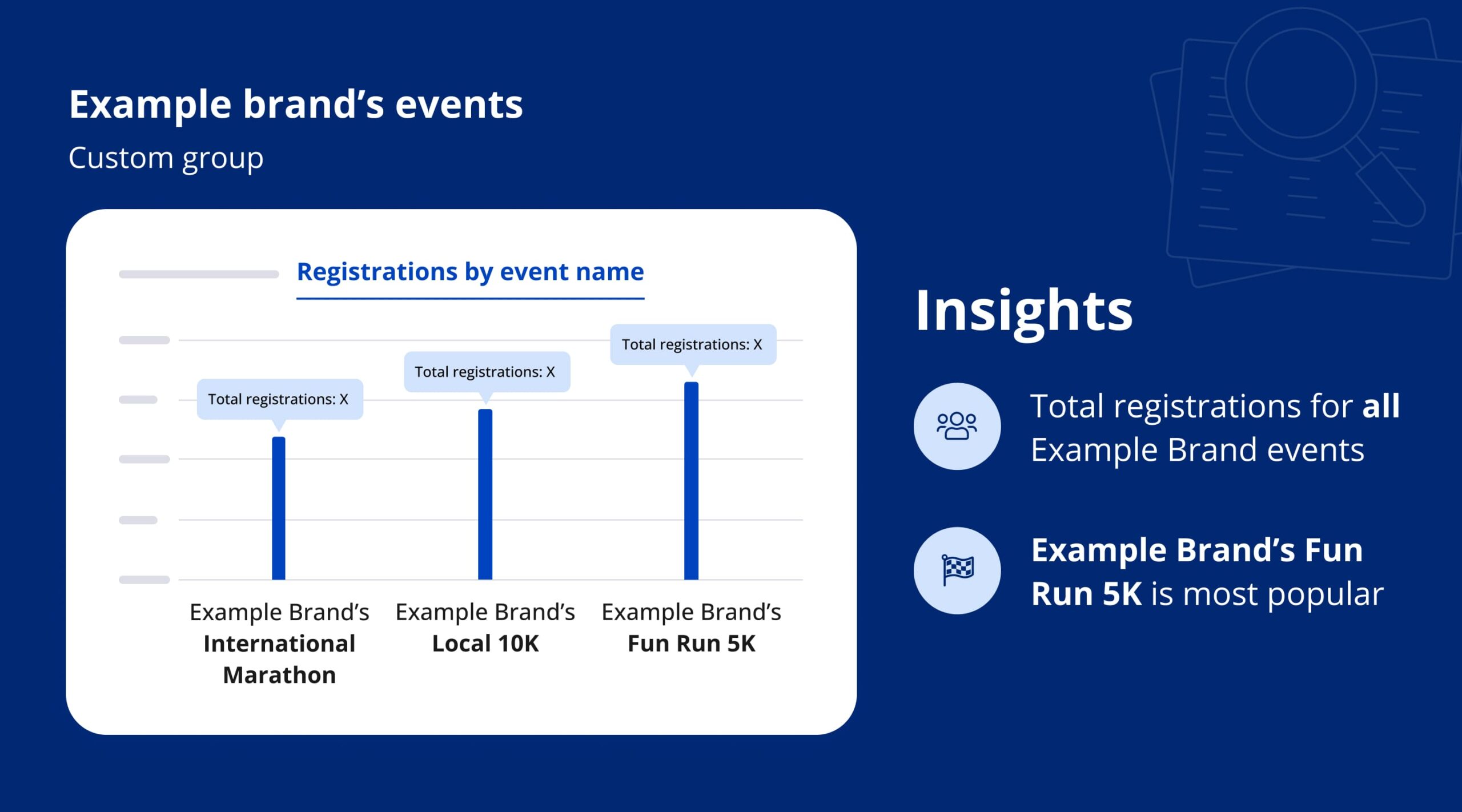 Or perhaps, you wish to analyze the performance of events sponsored by a particular brand. Create a custom group for these sponsored events and gain instant access to valuable insights.