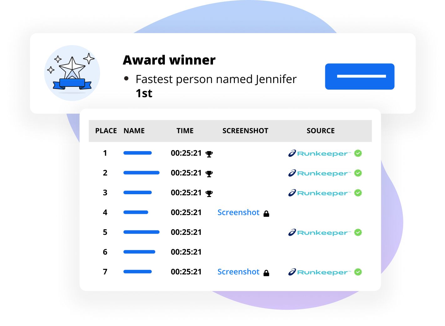 Seamlessly create and assign a variety of virtual awards, acknowledging the efforts of your participants. Get creative and provide recognition to the ‘top finishing person in San Francisco’ or award the ‘fastest Jennifer’. With verified results, you can hand out your virtual awards with confidence.