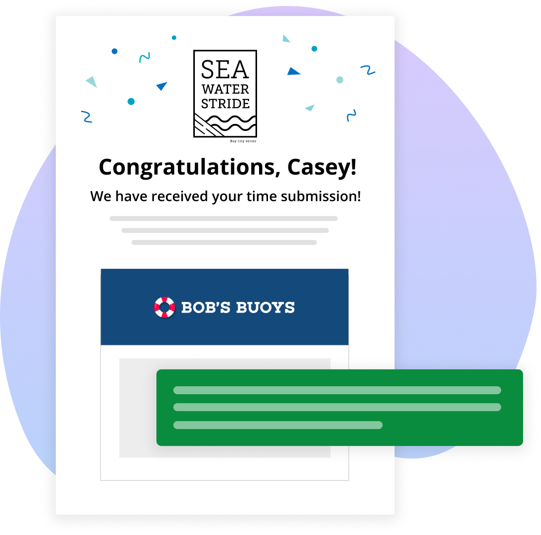 Leverage our email campaign tool or SMS text message functionality to deliver important event information straight to your participants. You can also equip your timing partner with their very own communication platform, allowing them to trigger a custom “congratulations” email for participants at the time they post their results! You can even take communication one step further with pre-recorded audio cues that will play to your participants as they participate in their event.