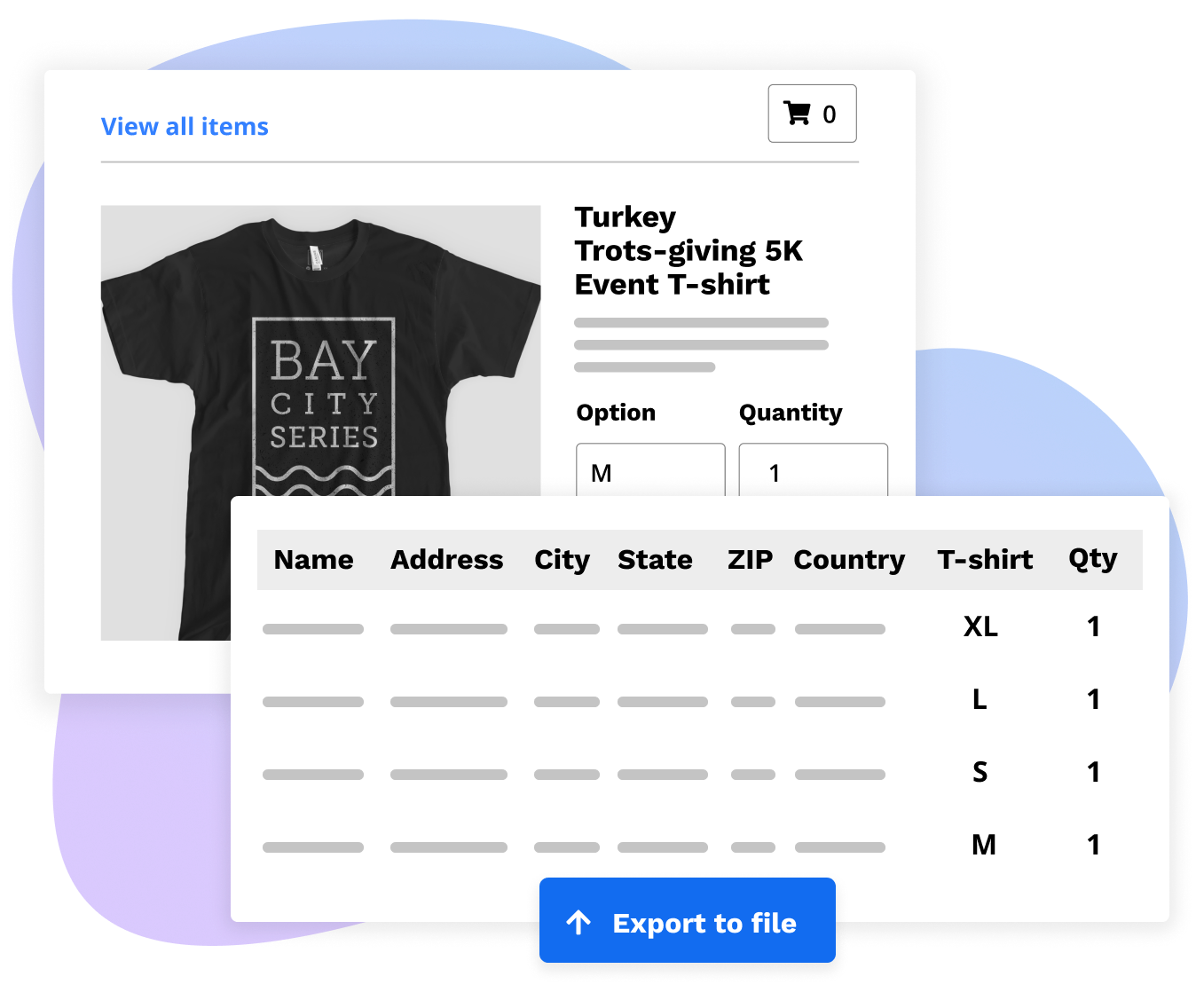 Sell event merchandise both inside and outside of your registration form. Create discount codes and email campaigns to up-sell products to your virtual event participants. Additionally, you can collect the shipping information you need and export your participant list with addresses for seamless shipping.