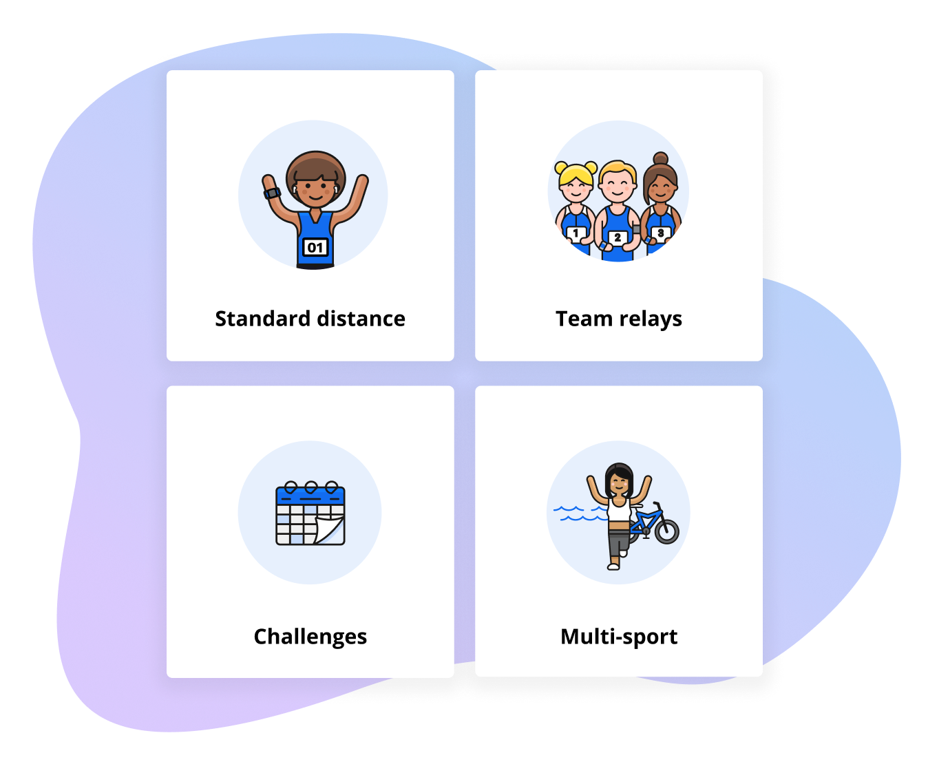 Select from a variety of virtual event options to bring participants together! Host virtual triathlons, team relays, standard distance events, or engaging challenge events to provide your participants with meaningful experiences they will never forget.