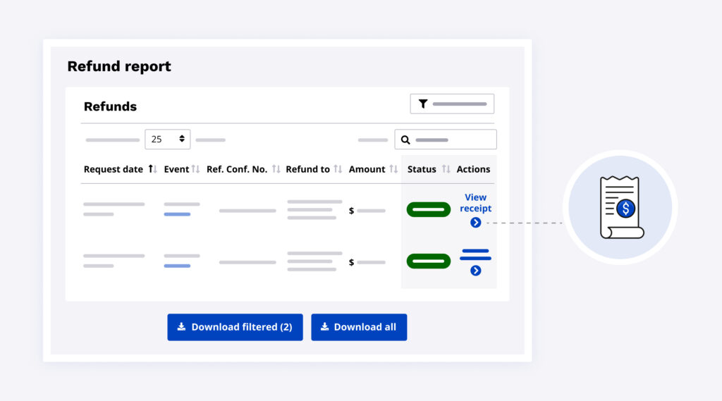 As always, you can see a detailed refund report to keep track of all issued refunds. The refund report can be downloaded and the detailed receipt can be viewed right within your dashboard!