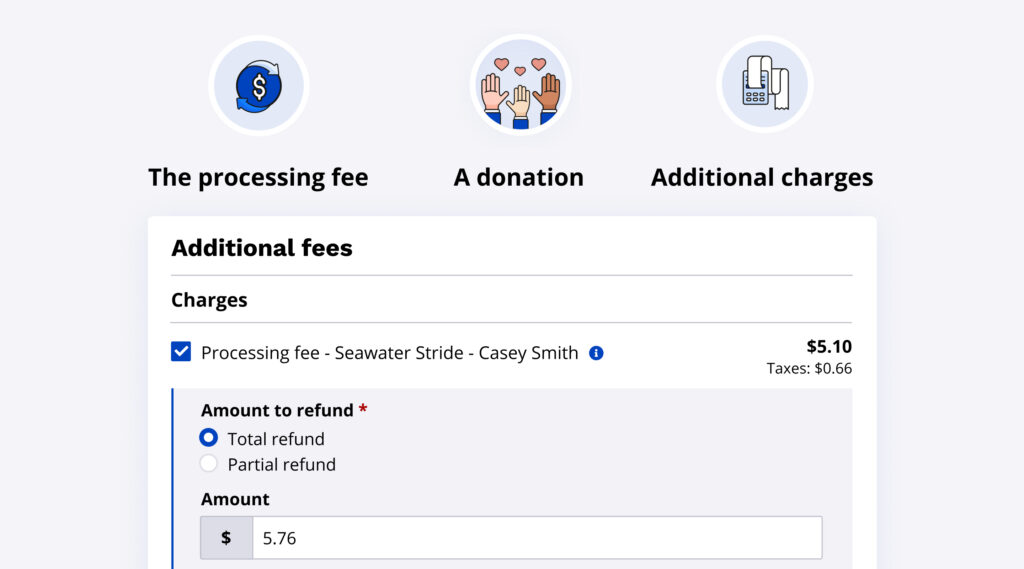 You may only need to refund a portion of something, rather than the entire amount. Our partial refund capabilities previously allowed you to issue a partial refund on products and other registration items. You now also have the option to issue a partial refund on the following three items: