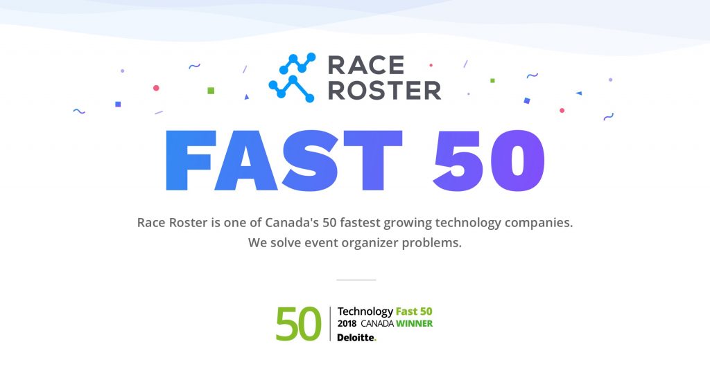 “2018 marked Race Roster’s seventh birthday. In dog years, that’s 49, and in tech years, it seems like it’s even more. From a site re-design to making the Deloitte Fast50 list, we’ve had an incredible year and we want to say thanks to our customers! Also, thank you to all of my new and old friends in the industry. We spend many days/nights/weekends on the road, and I am thankful to all of you for making our trips together memorable and enjoyable.”